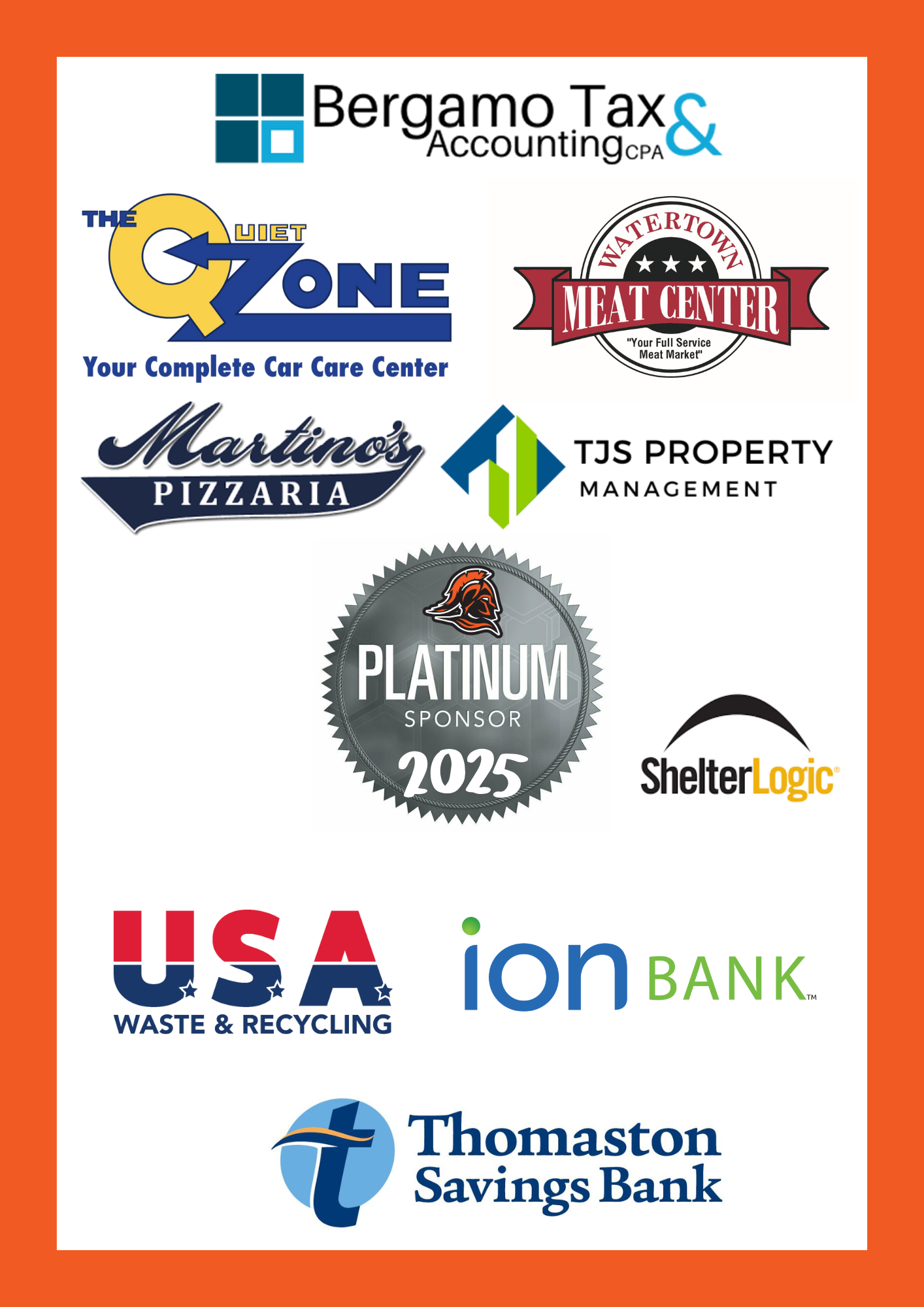 Sponsorship offers a way to help local businesses grow by increasing visibility, while expressing support for the youth of our Town of Watertown-Oakville community. We have several sponsorship opportunities available (see below) and can even custom tailor a package to fit your business needs.